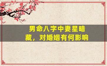 在八字命理学中,"妻星暗藏"通常指男命八字中代表配偶的十神(正财或偏财)没有直接出现在天干,而是藏在地支的藏干中。这种情况对婚姻的影响需结合具体命局综合分析,以下是一些可能的解读方向:
