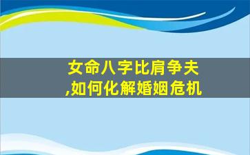 在八字命理中,"比肩争夫"通常指女命八字中比肩星(与日主相同的五行)过旺,可能引发感情竞争或婚姻不稳的情况。这种情况并非绝对,但若命局中确实存在此类隐患,可以从命理调整和现实行为两方面进行化解: