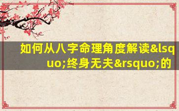 从八字命理角度解读“终身无夫”的女性命局,需结合婚姻相关的核心要素综合分析,包括配偶星、配偶宫、五行生克、神煞及大运流年等。以下是具体分析思路: