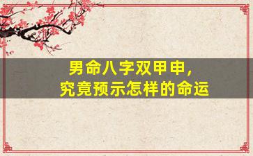 在八字命理中,"双甲申"指的是男性命主的年柱和月柱均为甲申(即天干为甲木,地支为申金)。分析此类命局需结合五行生克、十神配置及整体格局,以下为具体解读: