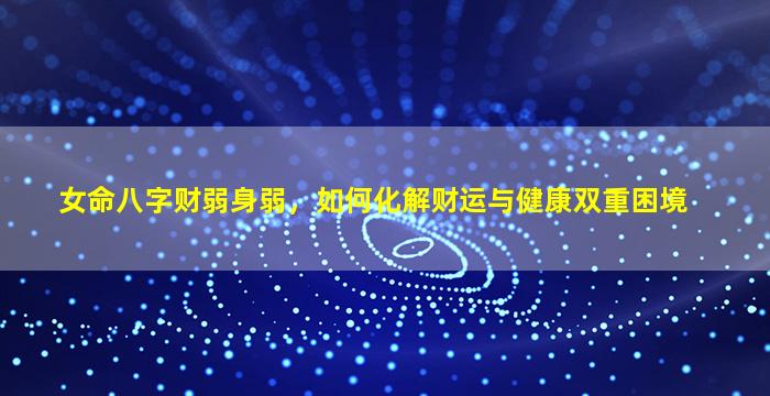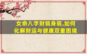 在八字命理中,女命若同时出现“财弱”(财运不佳)和“身弱”(日主能量不足)的情况,确实容易导致经济压力与健康问题双重困扰。化解这类困境需从命理调理和现实行为两方面入手,以下为具体建议: