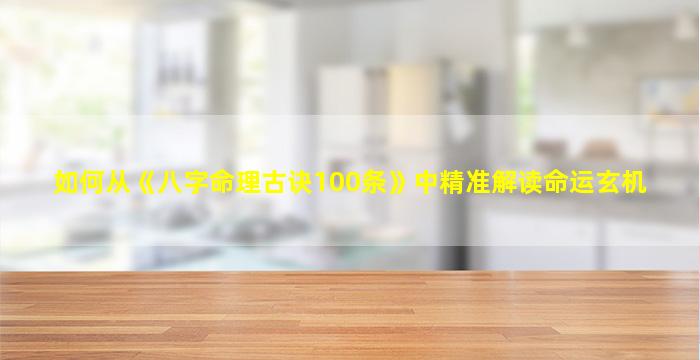 解读《八字命理古诀100条》或其他命理古籍中的“命运玄机”,需要结合系统性的命理知识、实践经验以及辩证思维。以下是一套精准解读的方法框架,供参考: