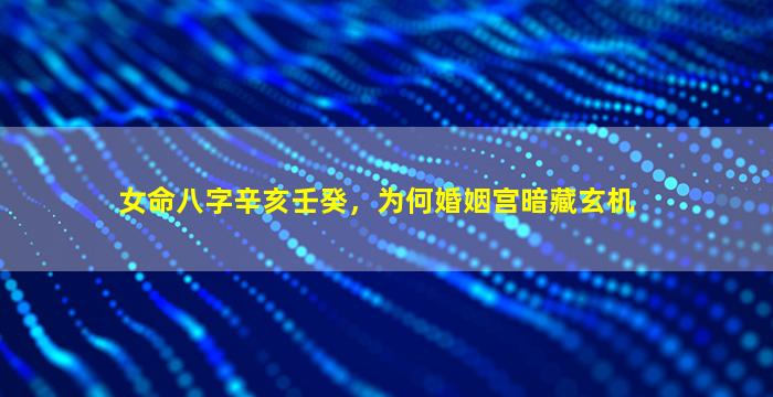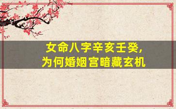 在八字命理中,婚姻宫(日支)的吉凶与组合对女命的婚姻影响显著。若女命八字日柱为辛亥,且月柱或时柱出现壬、癸水,这种“金水相生、食伤旺盛”的格局常暗示婚姻宫的复杂性。以下是具体分析:
