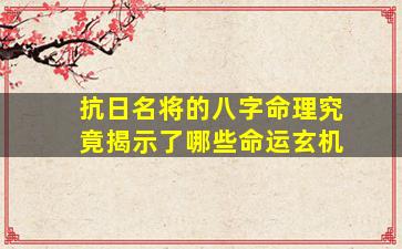 关于“抗日名将的八字命理与命运玄机”的探讨,需结合中国传统文化中的命理学与历史背景进行客观分析。以下从命理角度与历史现实结合的角度展开说明: