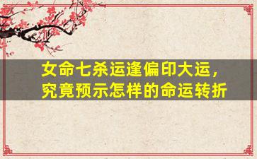 在命理学中,女命逢“七杀运”与“偏印大运”的交叠,往往预示着一段充满挑战与机遇的复杂阶段。需结合具体八字格局、五行生克及神煞配置综合分析,以下为常见解读方向: