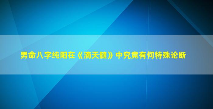 3. 纯阳男命的特殊论断