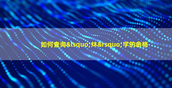 查询汉字的“命格”(通常指五行属性、吉凶寓意等)在传统命理学中属于“测字”或“姓名学”范畴,主要通过字形、笔画、五行理论等进行分析。以下是查询“炑”字命格的步骤和方法: