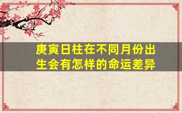 关于庚寅日柱在不同月份出生的命运差异,需要结合八字命理中的“月令”(出生月份地支)对日主的影响来分析。庚金为阳金,象征刚锐坚韧,而寅木为阳木,藏甲木、丙火、戊土,具有生发之气。月令不同会导致五行能量强弱变化,从而影响命局平衡。以下从命理角度简要分析: