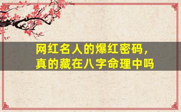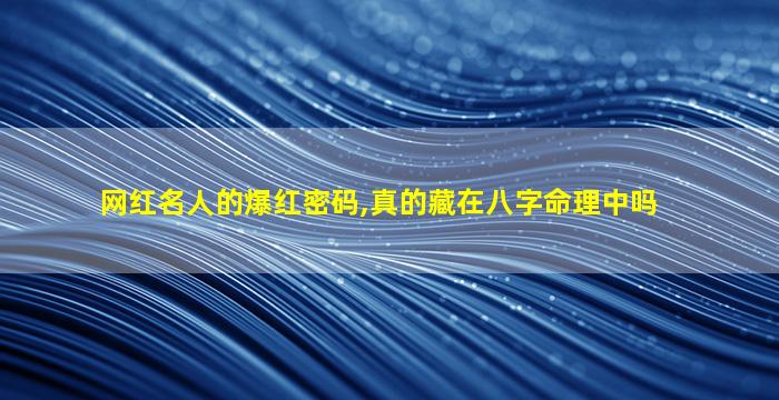 关于“网红名人的爆红密码是否藏在八字命理中”的问题,可以从科学、文化、社会心理等多个角度进行分析,结论需要理性看待: