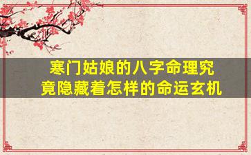 关于“寒门姑娘的八字命理”的命运玄机,我们可以从传统文化中的命理学角度进行探讨。八字(四柱命理)是通过出生年、月、日、时的天干地支组合,分析一个人的性格、机遇和潜在人生轨迹的工具。但需注意,命运并非完全由命理决定,个人努力与环境因素同样重要。以下是一些可能的命理分析方向: