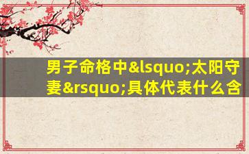 “太阳守妻”是传统八字命理中的一个术语,主要描述男性命盘中太阳星(日主)与夫妻宫或配偶星之间的特定关系。其含义需结合具体命盘分析,但通常有以下几种解释方向:
