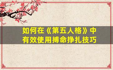 在《第五人格》中,“搏命挣扎”通常指求生者在被监管者牵气球时通过快速点击挣扎按钮逃脱的技巧(正式名称为“挣扎”),但合理利用天赋中的“化险为夷”(俗称“搏命”)也是关键战术。以下是结合两者的有效使用技巧: