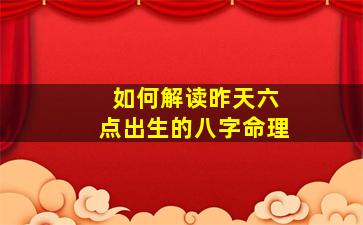 要解读“昨天六点出生”的八字命理,需结合具体出生日期、时间和地点(时区)来排盘。以下是通用解读方法及示例说明: