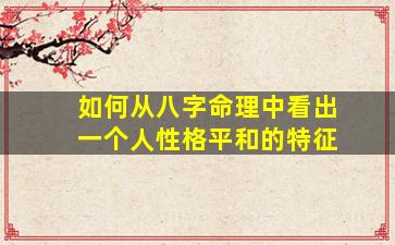 在八字命理中,判断一个人性格是否平和,需要结合命局中的五行生克、十神配置、日主强弱以及干支组合等因素综合分析。以下是具体方法和特征: