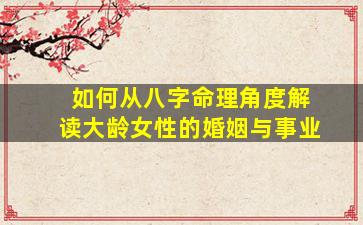 从八字命理的角度解读大龄女性的婚姻与事业,需结合命局中的十神、五行生克、宫位及大运流年等综合分析。以下为关键角度: