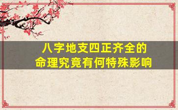 四正齐全的八字如同「能量放大器」,关键在于能否驾驭其纯粹而强烈的气场。具体影响需结合十神配置、五行生克、大运流年综合判断。此类命局者通常不适合平庸之路,若能修身养性、善用其锋芒,往往能成就非凡人生;反之则需警惕冲动与偏执带来的隐患。