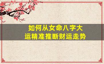 从女命八字大运推断财运走势,需结合命局、大运、流年及十神组合的系统分析。以下是具体步骤和要点: