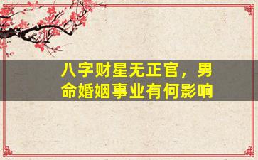 在八字命理中,财星代表男性的财富、物质资源和妻子(正财为妻,偏财为情人或额外收入),而正官代表事业、社会地位、自我约束力以及男性的子女。若男命八字中 财星明显但无正官,对婚姻和事业的影响需结合具体命局分析,以下是一些常见解读方向: