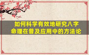 研究八字命理在普及应用中的方法论需要兼顾传统文化的传承与现代科学的实证精神,同时注重实用性和可操作性。以下是一个系统的研究框架和方法建议: