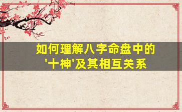 八字命盘中的“十神”是命理学中分析个人命运的核心概念,通过天干地支的阴阳五行生克关系,揭示人与周围环境的互动模式。以下是系统的解析:
