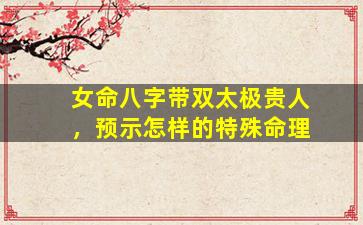 在八字命理中,太极贵人是一种重要的神煞,象征智慧、悟性、福气以及与神秘文化的缘分。女命八字带有双太极贵人(即年柱和日柱或其他组合中同时出现),通常被认为具有以下特殊命理特征: