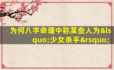 在八字命理中,“少女杀手”这一说法并非传统命理学的专业术语,而是民间或网络文化中对某些命格特征的戏谑性描述,通常结合了现代流行语和命理象征的解读。其背后的逻辑主要基于以下几点命理概念: