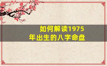 解读1975年出生的八字命盘,需结合具体出生时间(年、月、日、时)排出四柱,分析五行生克、十神关系及大运流年。以下是通用步骤和注意事项: