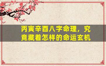在八字命理中,“丙寅辛酉”分别代表年柱和月柱的天干地支,但完整的八字需包含日柱和时柱。仅凭前两柱,可初步分析部分命局特征,但整体命运需结合完整八字及大运流年。以下是基于现有信息的解读: