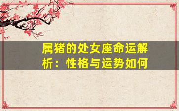 属猪的处女座结合了中国生肖中“猪”的温和与西方星座中“处女座”的细致,形成了独特而复杂的性格与命运轨迹。以下是具体的解析: