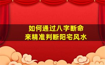 通过八字断命来精准判断阳宅风水,是传统命理学与风水学结合的一种方法,其核心在于分析个人命局五行喜忌与住宅风水之间的平衡关系。以下是系统化的步骤和要点: