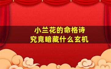 关于小兰花的命格诗,目前公开的剧情和官方资料中并没有明确给出完整的诗句内容和具体解析(截至2023年10月)。不过,结合《苍兰诀》的设定和角色命运走向,可以推测命格诗可能暗藏以下玄机: