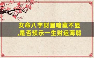 在八字命理中,财星代表一个人的财富能力和物质资源,但“财星暗藏不显”是否直接预示一生财运薄弱,需要结合命局整体结构和用神平衡来综合判断,不可一概而论。以下为具体分析要点: