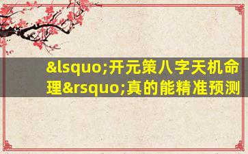 关于“开元策八字天机命理”或其他命理预测方法是否能精准预测命运,可以从以下几个角度理性看待: