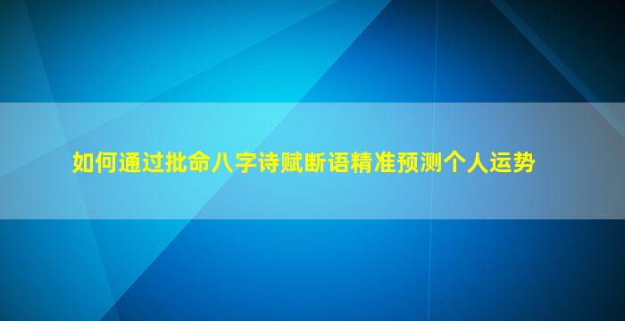 通过八字命理(四柱预测)结合诗赋断语来预测个人运势,是传统命理学中较为精深的实践方法。以下是系统化的步骤和要点,帮助理解这一过程的逻辑和技巧: