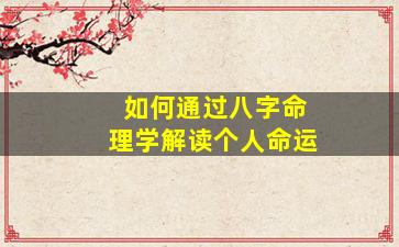 通过八字命理学(又称四柱命理)解读个人命运,是中国传统命理学的核心方法之一。其理论基础源自阴阳五行、天干地支的相互作用,结合个人出生时间(年、月、日、时)推算命运趋势。以下是系统的解读步骤和逻辑框架: