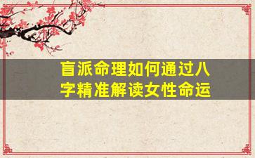盲派命理作为中国传统命理学的重要分支,以其独特的"取象直断"和"实战技法"在八字解读中独树一帜。对于女性命运的解析,盲派尤其注重宫位、十神、刑冲合害的联动关系,结合"巾箱秘术"等口诀进行精准推断。以下从五个核心维度展开说明: