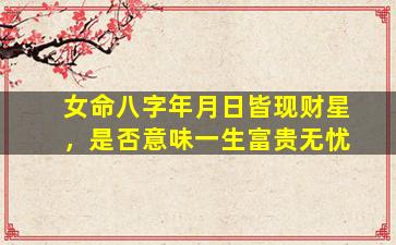 在八字命理学中,财星确实代表财富、物质资源,但判断一生是否"富贵无忧"需综合考虑多重因素,不可仅凭财星数量简单定论。以下为专业分析框架: