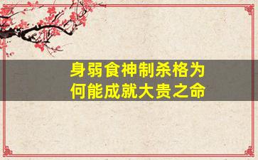 在八字命理中,"身弱食神制杀格"被视为一种特殊格局,其能够成就大贵之命的关键在于平衡与制化的巧妙配合。以下是其核心逻辑的分析: