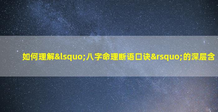 “八字命理断语口诀”是中国传统命理学中浓缩的经验,以简洁的语言揭示五行生克、十神互动与命运趋势的规律。要深入理解其内涵并灵活运用,需从以下几个层面入手: