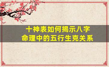 八字命理中的“十神”是通过日干(出生日的天干)与其他七个天干地支的五行生克关系来定义的,它们揭示了五行之间的相互作用和命局平衡。以下是十神表如何揭示五行生克关系的具体分析:
