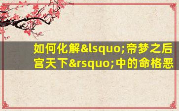 在《帝梦之后宫天下》这类宫廷题材的游戏中,"命格恶运"通常指角色因初始属性、随机事件或剧情设定而面临的负面状态(如疾病、失宠、家族衰落等)。要化解这种困境,可以结合游戏机制和策略进行调整,以下是一些常见方法:
