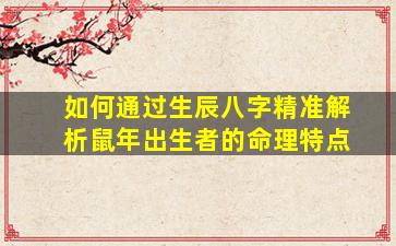 通过生辰八字解析命理需要结合天干地支、五行生克、十神配置等要素进行综合分析。以下是以鼠年(子年)出生者为例的精准解析方法,供参考: