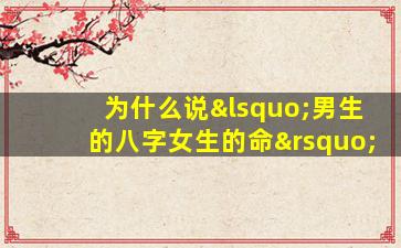 “男生的八字,女生的命”是一句民间俗语,通常用于形容一个人的生辰八字(命理)与性别特征或社会性别角色不符的现象。其背后的含义可以从以下几个角度理解: