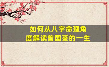 从八字命理的角度解读曾国荃(,晚清湘军名将,曾国藩之弟)的一生,需结合其历史背景和传统命理理论进行推演。由于曾国荃的具体生辰八字(出生年、月、日、时)未见确切记载,以下分析基于其历史事迹和命理象征展开,仅供参考: