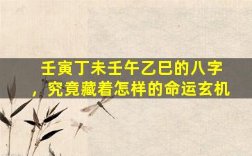 根据您提供的八字“壬寅 丁未 壬午 乙巳”,我将从专业命理学角度进行解析: