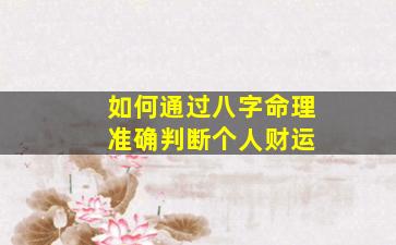 通过八字命理(四柱预测)判断个人财运,需结合命局中的财星、五行生克、十神配置以及大运流年的影响综合分析。以下是具体步骤和要点: