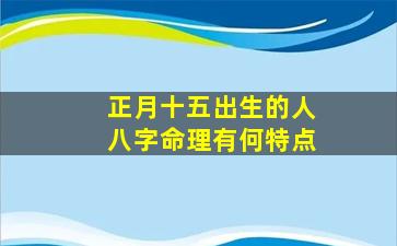 正月十五(农历)出生的人,八字命理特点需结合具体年份、时辰等因素综合分析,但以下是一些常见特征和传统命理学的解读方向: