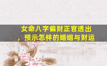 在八字命理中,女命的偏财与正官透出天干,确实对婚姻和财运有重要影响,但需结合整体八字格局、五行生克、地支藏干等因素综合分析。以下是传统命理中的一般性解读方向: