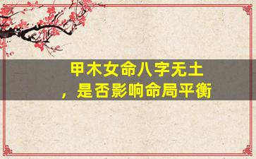 在八字命理中,五行(木、火、土、金、水)的平衡对命局的影响至关重要。甲木女命若八字中完全无土,需结合具体格局和用神分析,以下从几个角度展开讨论:
