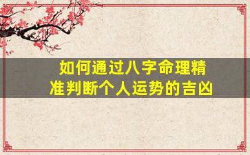 通过八字命理(四柱预测)判断个人运势的吉凶,需要结合天干地支、五行生克、十神关系、大运流年等综合分析。以下是系统的分析步骤和关键要点: